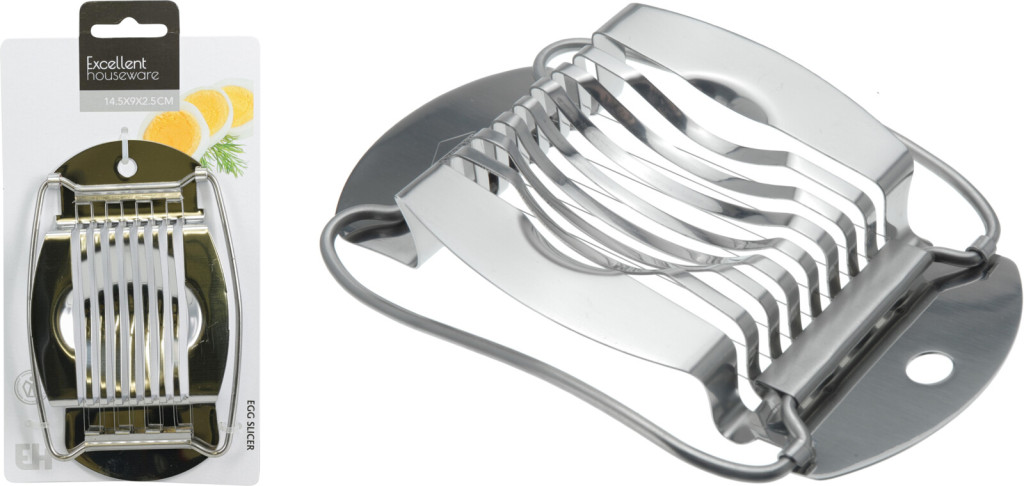 Ez a fém tojásvágó praktikus és hasznos konyhai eszköz, amely megkönnyíti a főtt tojás gyors és egyenletes szeletelését. Segítségével pillanatok alatt szabályos szeletekre vághatja a tojást, így ideális választás szendvicsek, saláták vagy hidegtálak elkészítéséhez.