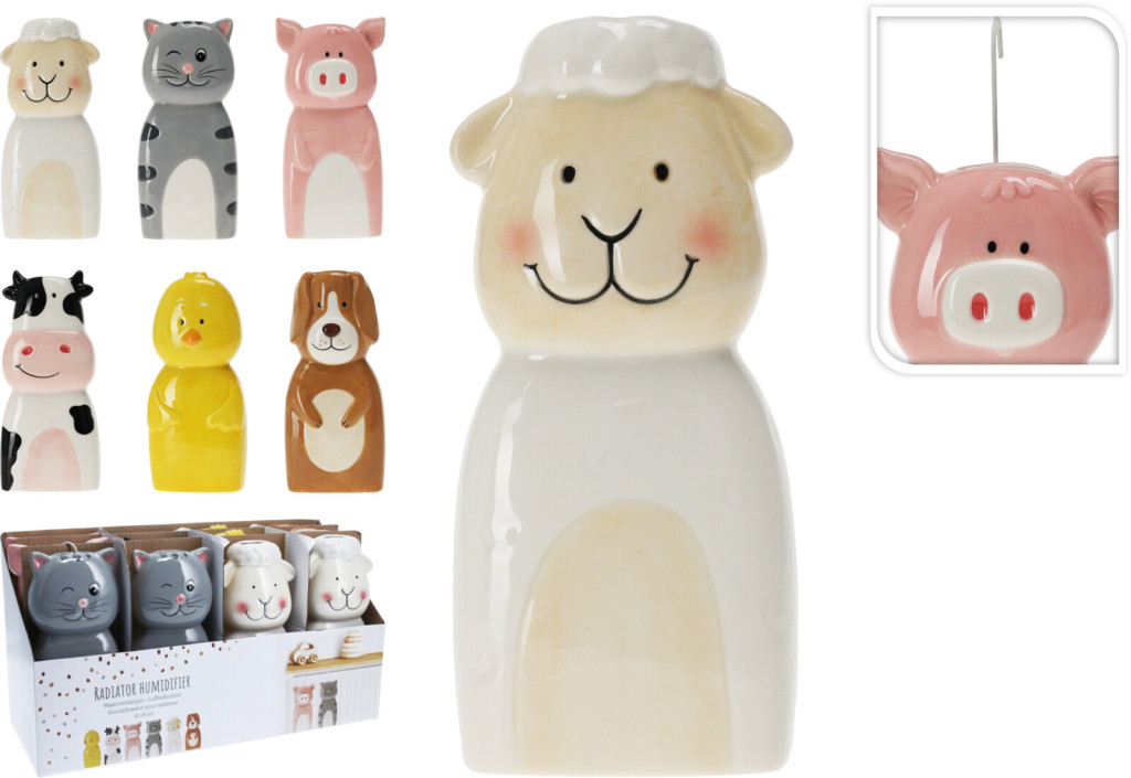A 9 x 19 cm-es kerámia párologtató könnyen használható. Csak fel kell tölteni vízzel, majd a radiátorra akasztani. A radiátor hője hatására a víz lassan párologni kezd, így természetes módon segíti a levegő párásítását. A párologtató hat különböző, aranyos állatfigurás változatban érhető el, amelyek vidám hangulatot visznek a helyiségbe. A kedves minták miatt nemcsak praktikus eszköz, hanem dekorációként is jól mutat a szobában, legyen szó nappaliról, hálószobáról vagy akár gyerekszobáról.