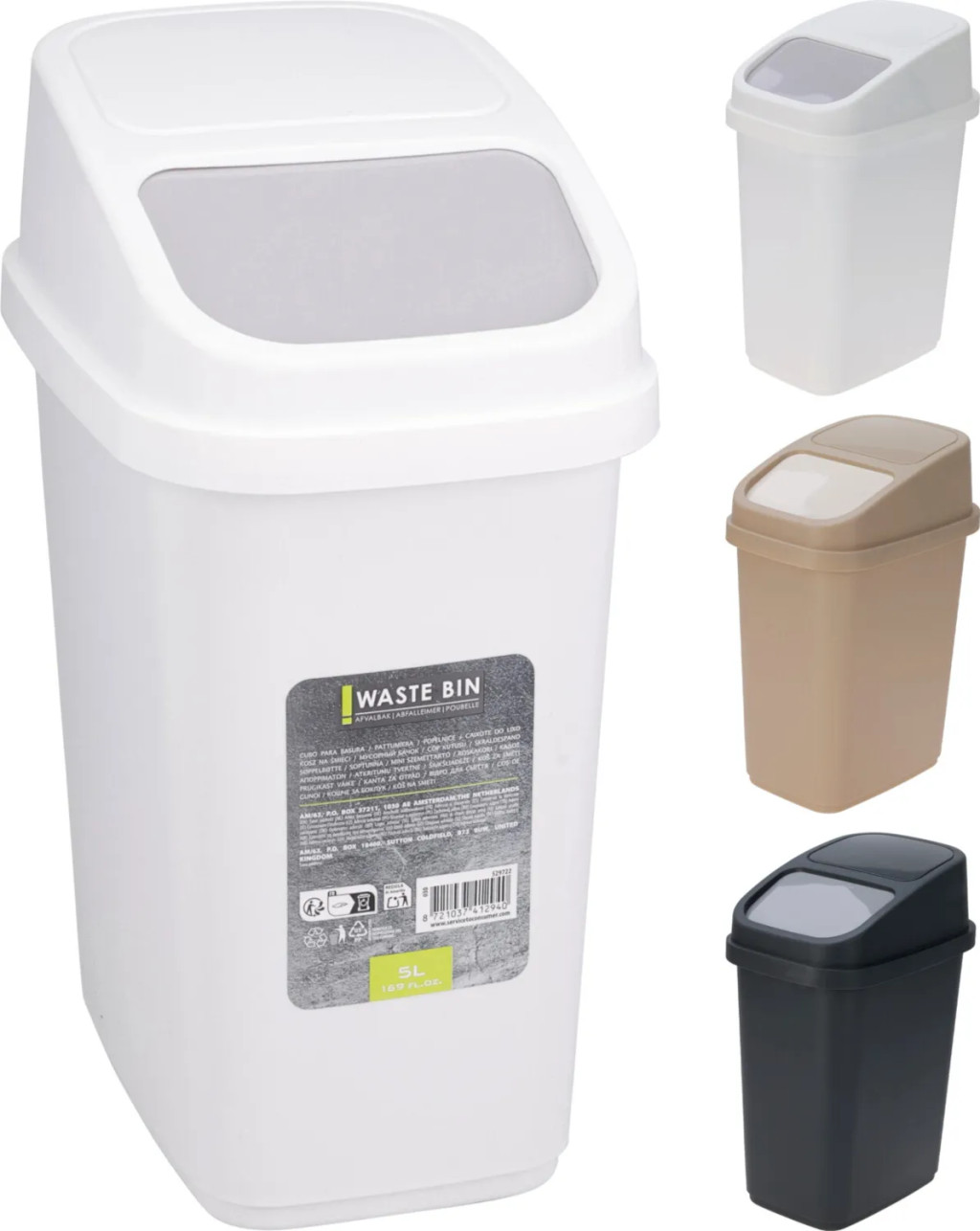 Szemetes vödör, műanyag, visszazáródós, billenős, 5 literes, 3 féle