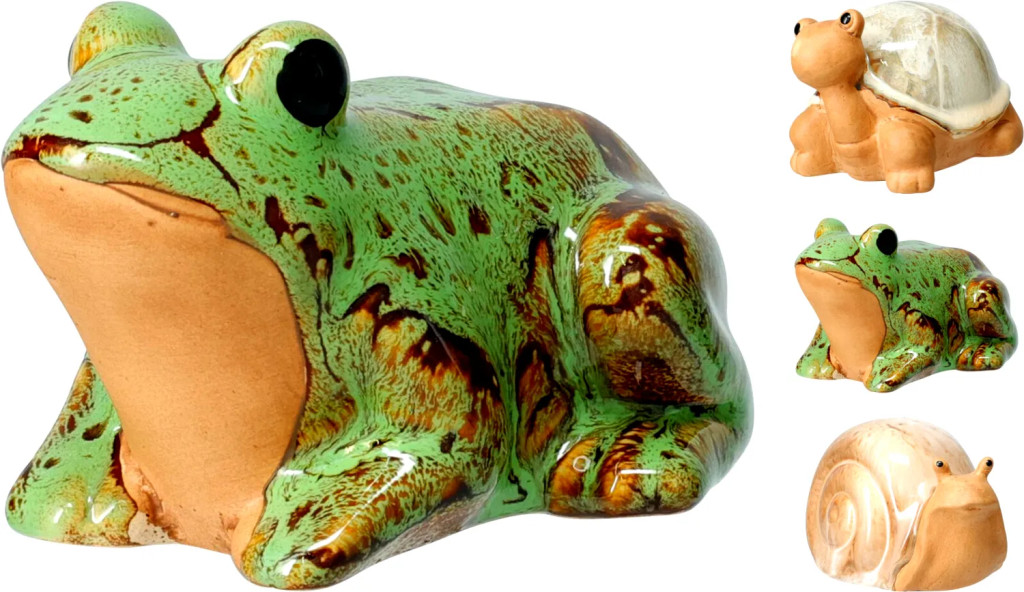 A háromféle aranyos dizájn közül választhatsz, így könnyedén megtalálhatod azt a kis figurát, amely legjobban illik a kerted stílusához. A kb. 10 x 7 cm-es méret ideálissá teszi őket virágcserepek mellé, kerti ösvények szélére vagy akár teraszra helyezve, ahol diszkrét, mégis látványos dekorációként szolgálnak. A kerámia anyag nemcsak tartós, hanem esztétikus is, a részletgazdag kidolgozás pedig igazán élettelivé teszi ezeket a kis állatokat. Természetes színeik és kedves megjelenésük harmonikusan illeszkedik a zöld környezetbe, így még hangulatosabbá varázsolják a kertet.
