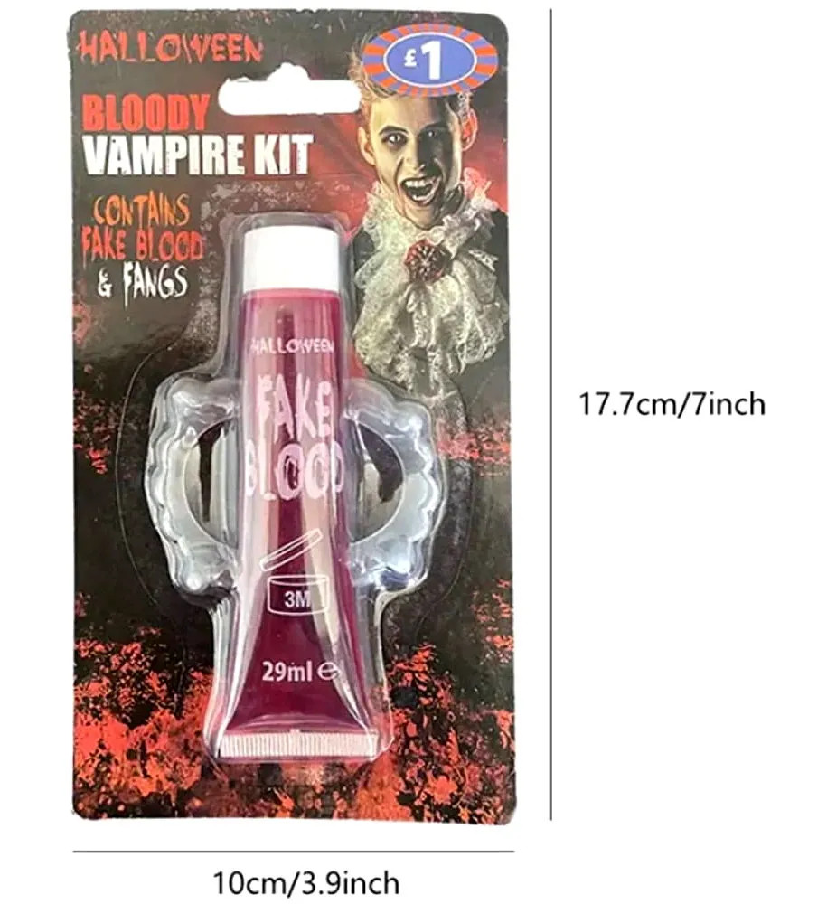 A szett tartalmaz egy pár élethű vámpírfogat, amelyek könnyen felhelyezhetők és kényelmesen viselhetők, valamint egy tubus művért, amellyel még drámaibbá és látványosabbá teheted a jelmezed. A művér könnyen használható és realisztikus hatást kelt, így tökéletes választás Halloweenre, farsangra vagy bármilyen tematikus rendezvényre.
