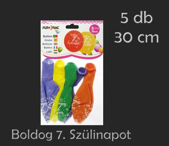 Boldog 7. Szülinapot feliratos lufi csomag, 5 db, 30 cm