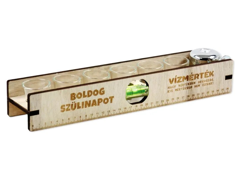 Ha igazán egyedi és emlékezetes születésnapi ajándékot keresel, ez a Boldog Szülinapot feliratos vízmérték pálinkás pohár szett garantáltan nagy sikert arat. A 37 x 6 cm-es vízmérték formájú tartó nemcsak látványos, hanem poénos utalás is arra, hogy az ünneplésnél a szintet bizony érdemes tartani.