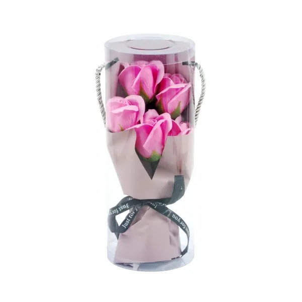 Szappanrózsa csokor, 5 szál, rózsaszín, 24 cm