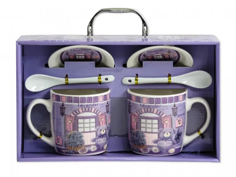 Levendulás mintás bögreszett kanállal ajándék dobozban