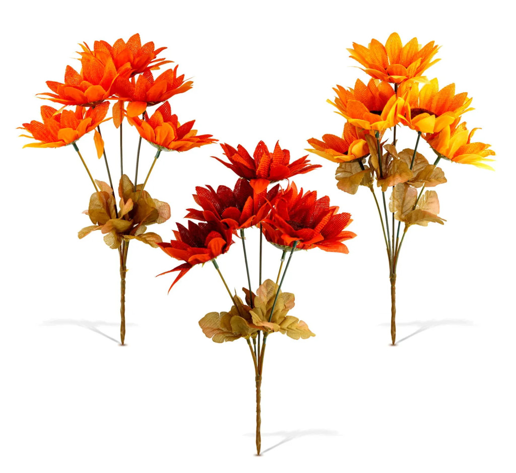 Dobd fel az otthonodat ezzel a gyönyörű, háromféle változatban kapható őszi napraforgós dekorációval. A 25 x 35 cm-es csokrok vidám narancs, sárga és vörös árnyalataikkal tökéletesen visszaadják az őszi természet meleg, barátságos hangulatát. A napraforgók frissességet, életvidámságot sugároznak, miközben harmonikusan illeszkednek bármilyen őszi dekorációs összeállításba.