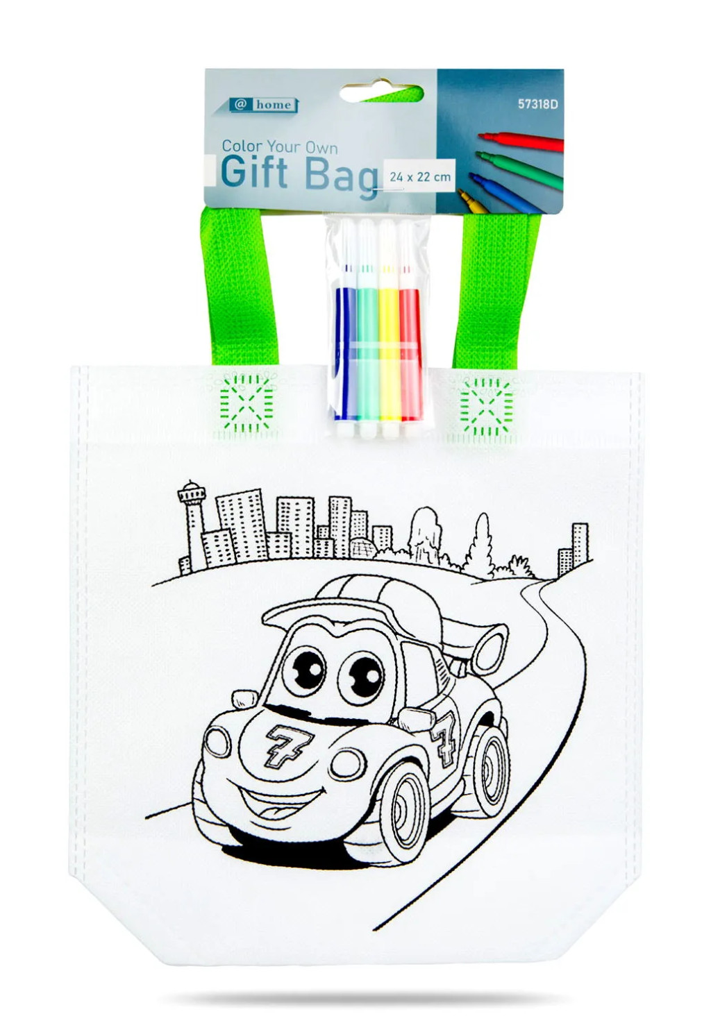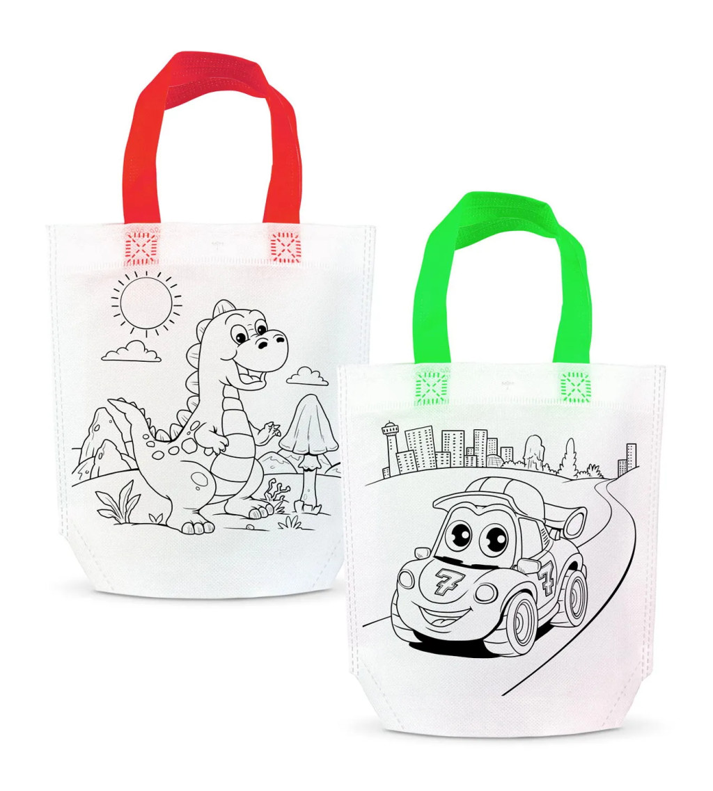 A színezhető ajándéktáska játékszett remek választás minden kisfiúnak, aki szeret alkotni és saját ötleteivel feldobni a mindennapokat. A 24 x 22 centis táska már első pillantásra mosolyt csal az arcokra a vagány mintáival, amelyek csak arra várnak, hogy életre keljenek a mellékelt 4 színes filc segítségével. A szettben kétféle motívum található, így minden kis alkotó kedvére választhat a versenyautós vagy a dinoszauruszos világ között, mindkettő vidám és fantáziadús jelenetekkel díszítve.
