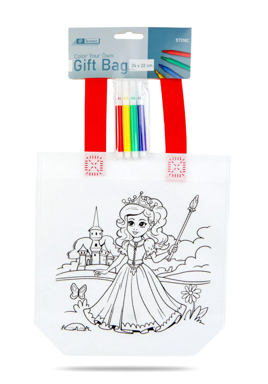 Színezhető ajándéktáska játékszett 4 filccel, lányos, 2 féle, 24 x 22 cm