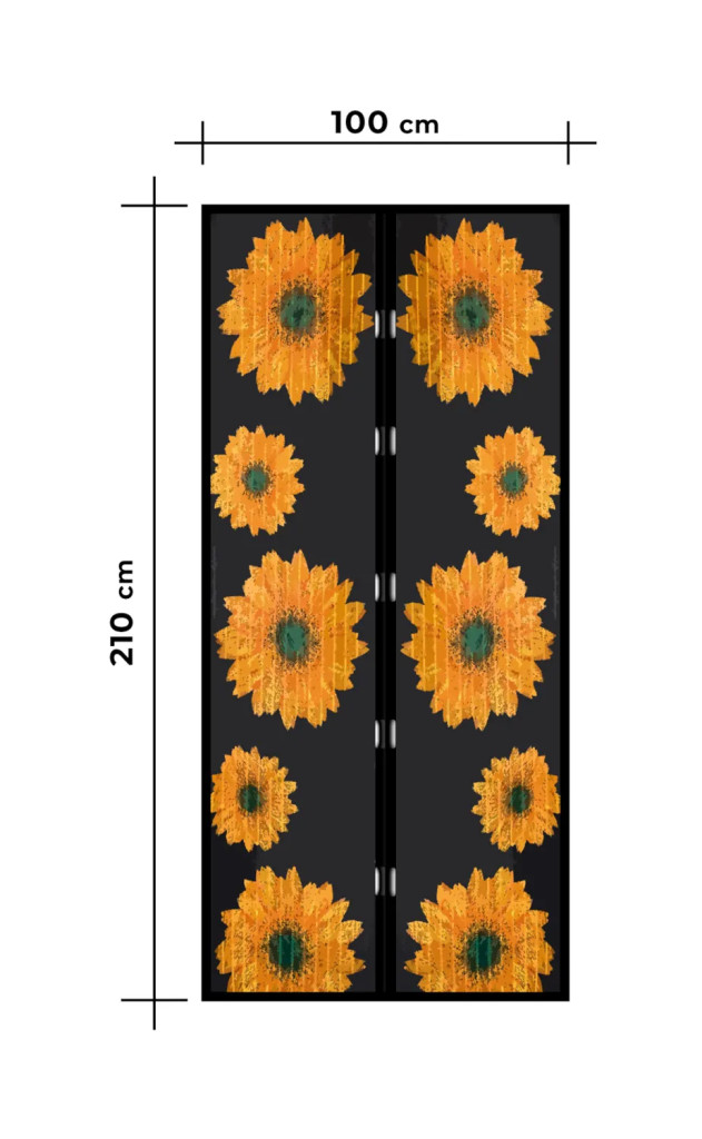 Szúnyogháló függöny ajtóra, mágneses, napraforgós, 100 x 210 cm