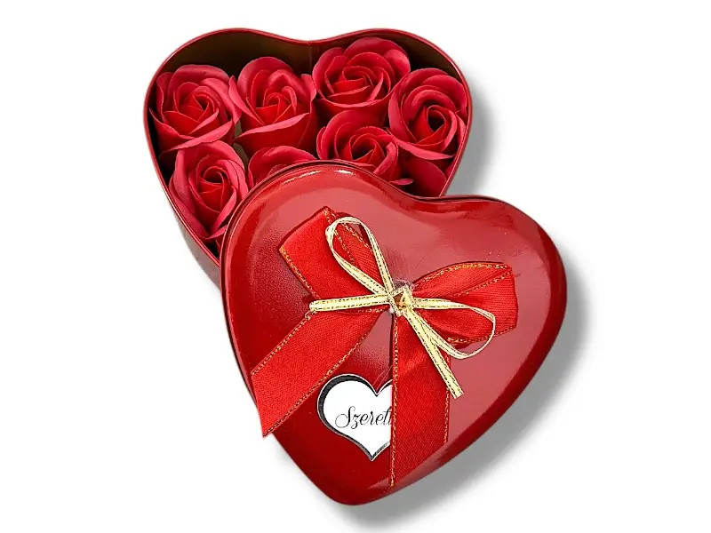 Lepd meg szeretteidet egy igazán különleges és romantikus ajándékkal ezzel a szív alakú fém dobozba rejtett szappanvirág kompozícióval, amely első pillantásra is elvarázsolja a megajándékozottat. A gyönyörűen kidolgozott, élénk színű rózsák nemcsak dekoratívak, hanem maradandó emlékként is szolgálnak, így hosszú ideig megőrzik szépségüket.