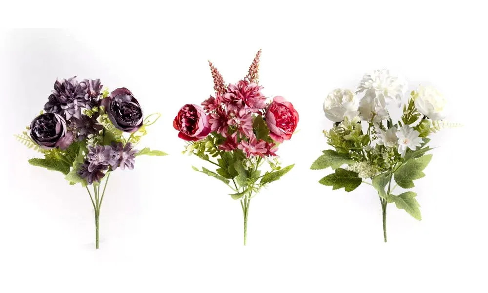 Rózsa + dália csokor 3 színben, 5 ágú, 30 cm