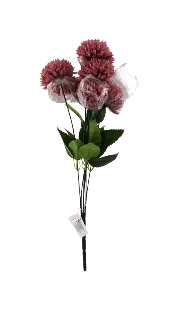 A krizantém csokor igazi klasszikus hangulatot teremt otthonodban, hiszen a szépen kidolgozott, élethű virágfejek egy pillanat alatt feldobják bármely helyiség atmoszféráját. A csokor 7 gyönyörű virágból áll, melyek dús levelekkel és harmonikus elrendezéssel egészülnek ki, így már önmagukban is látványos dekorációt alkotnak. A 42 cm-es méret elegendő ahhoz, hogy akár egy váza vagy asztaldísz középpontjaként is érvényesülni tudjon, de polcokon és komódokon is stílusos megjelenést nyújt.