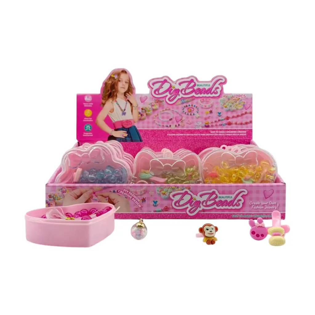 Ékszeres gyöngyfűző játékszett műanyag dobozban