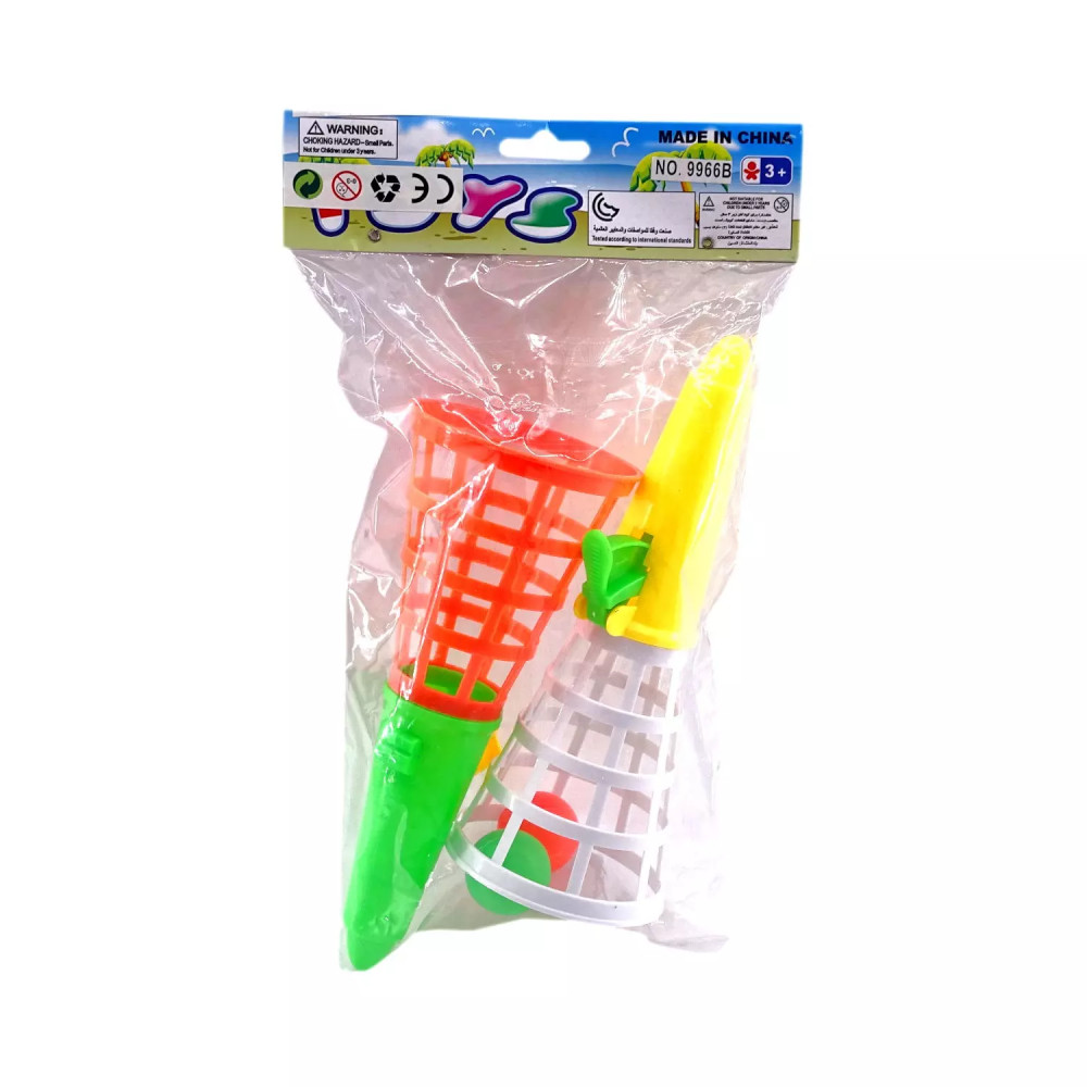 Labdakilövő játék szett 2 db labdával és 2 db kilövővel. Kiváló társas játék a szabadban. Segít a célzóképpesség fejlesztésében és a csapatmunka fontosságának megértésében.