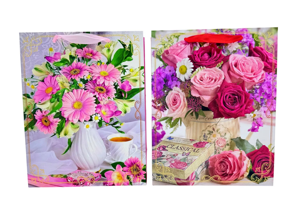 Papírtasak, virágos, 26 x 32 x 10 cm