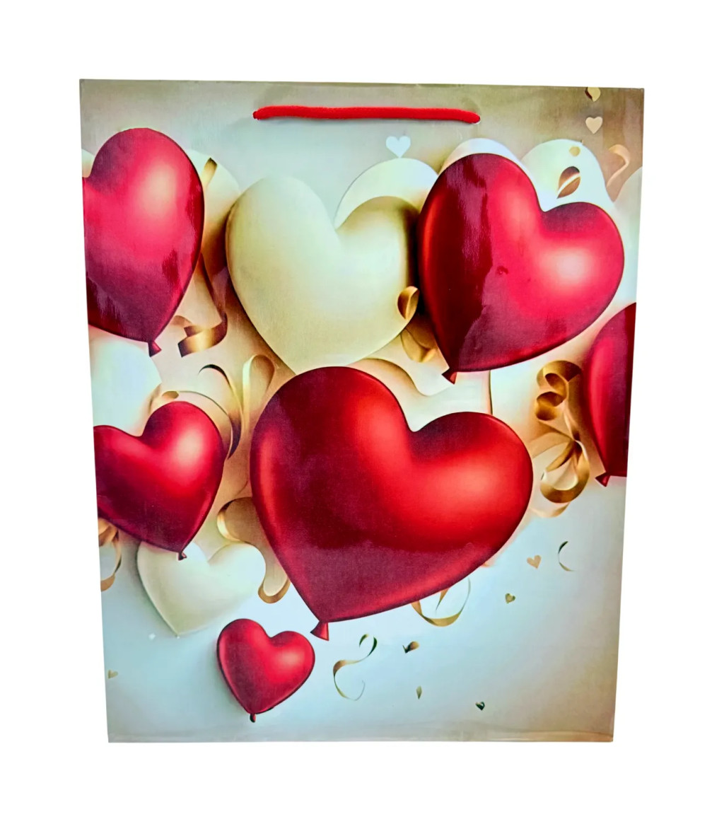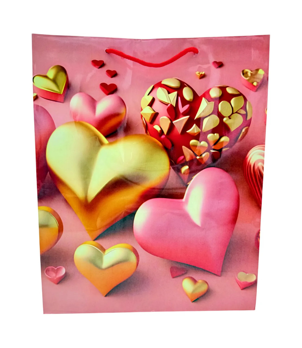 Ez a szívmintás papírtasak tökéletes választás, ha szeretnéd az ajándékozást még látványosabbá és igazán emlékezetessé tenni. A romantikus hangulatú dizájn, a piros, arany és fehér színek elegáns összhangja, valamint a játékos szív motívumok már első pillantásra is melegséget és szeretetet sugároznak, így garantáltan különleges élményt nyújtanak az ajándék átadásakor.