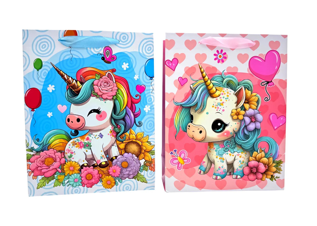 Papírtasak, unikornis, 18 x 23 x 8 cm