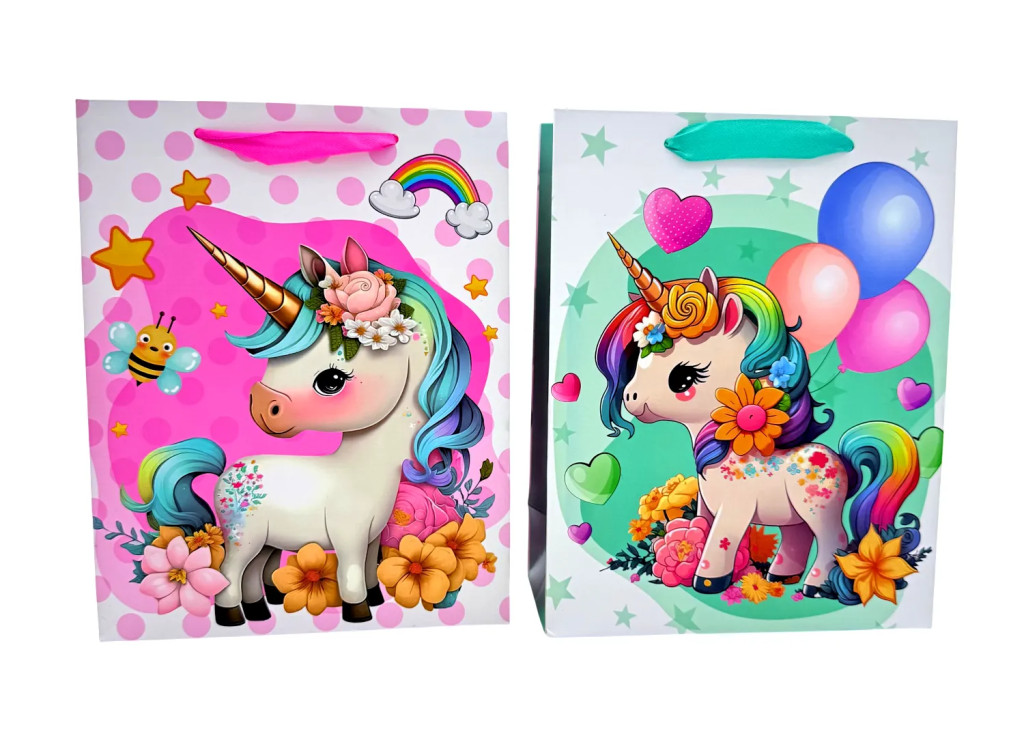 Ez az unikornisos papírtasak nem egyszerű csomagolás, hanem az ajándék része, amely már az első pillanatban különleges hangulatot teremt, és még izgalmasabbá teszi a meglepetés átadását.