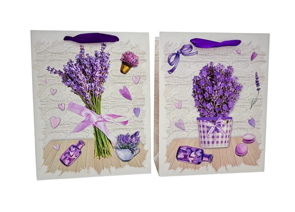 Ez a levendulás papírtasak igazi nyugalmat árasztó, elegáns választás, amely már ránézésre is a harmónia és a finom stílus érzetét kelti. A gyönyörű levendula csokrok, a lágy lila árnyalatok és a kedves, romantikus részletek együttese különleges hangulatot teremt, így tökéletes kiegészítője lehet bármilyen ajándéknak.