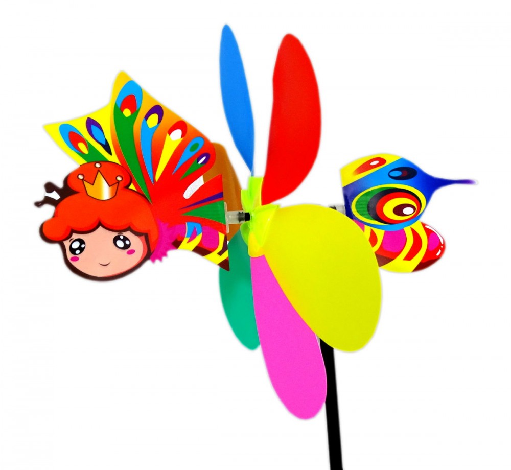 Ez a kis aranyos szélforgó a képen látható színes imádnivaló mese figurás díszítéssel rendelkezik.