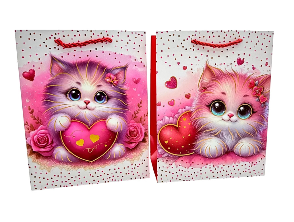 Papírtasak, Valentin cicás, 18 x 23 x 10 cm, 71643