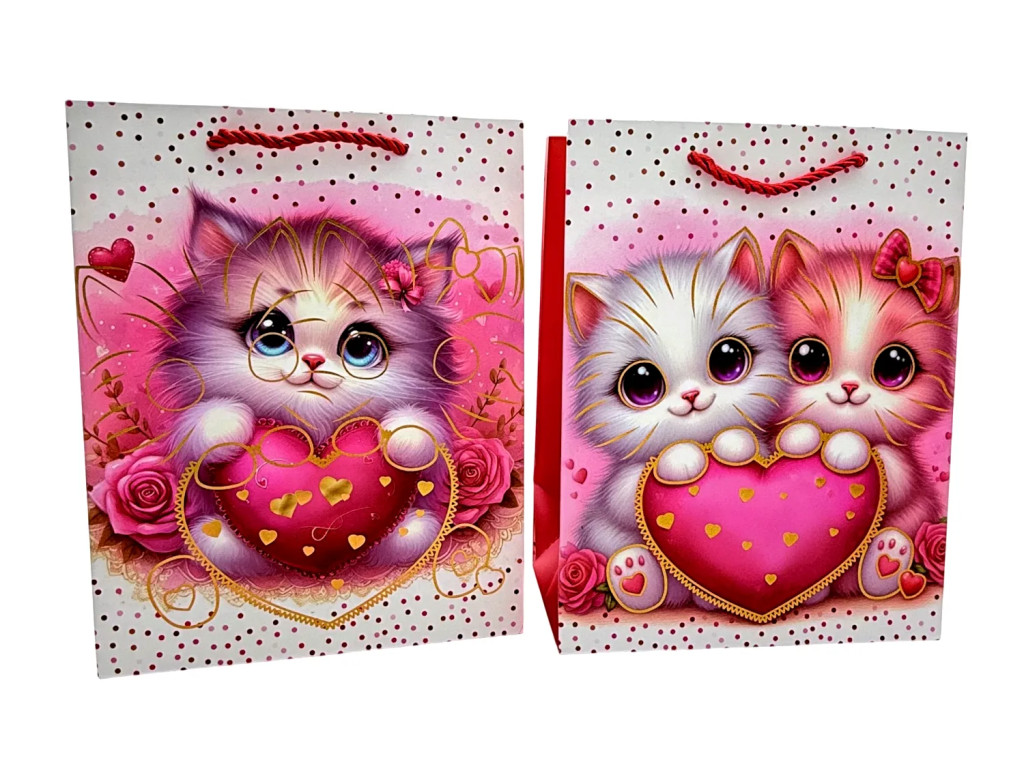 Papírtasak, Valentin cicás, 26 x 32 x 12 cm