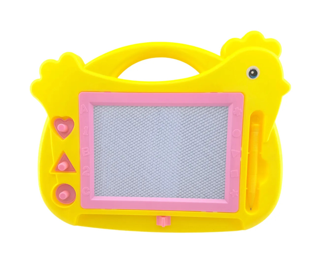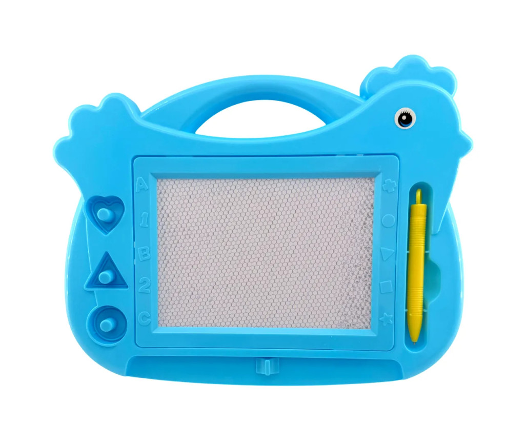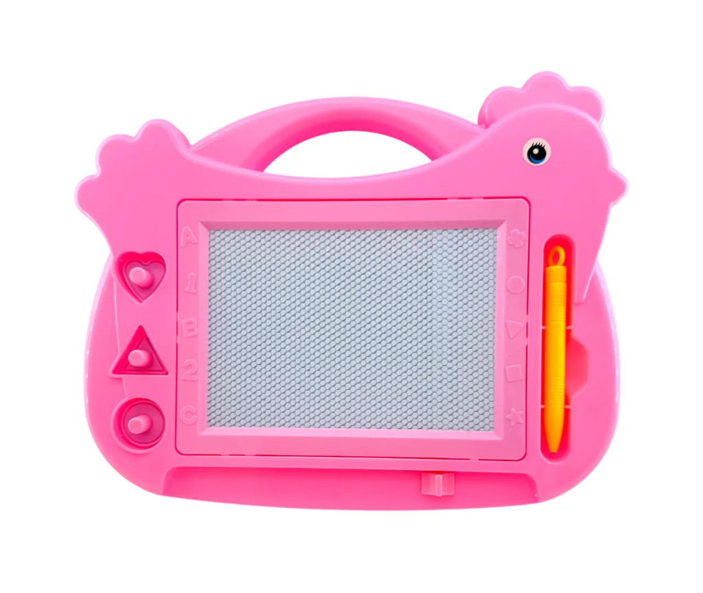 A tyúkanyó formájú dizájn vidám és figyelemfelkeltő, miközben a rajztábla könnyen kezelhető és ideális méretű a kis kezek számára. A mágneses toll és a beépített formanyomók segítenek a gyerekek kreativitásának kibontakozásában, és játék közben fejlesztik a kézügyességet.