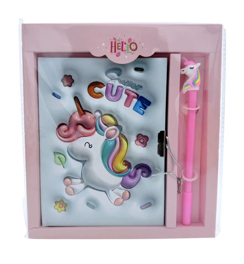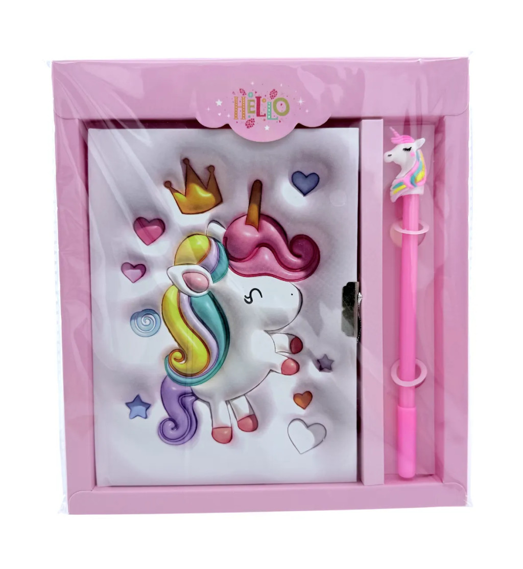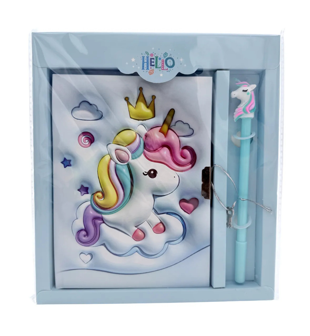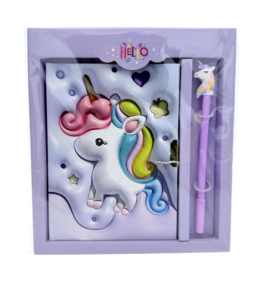 Emlékkönyv + lakat + toll szett, unikornis, 20 x 22 cm