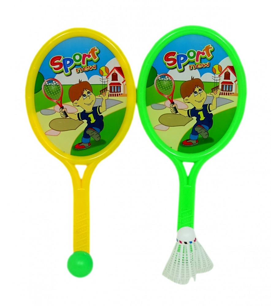 A szett tartalma: 2 db ütő, 1 db tollaslabda és 1 db színes labda.