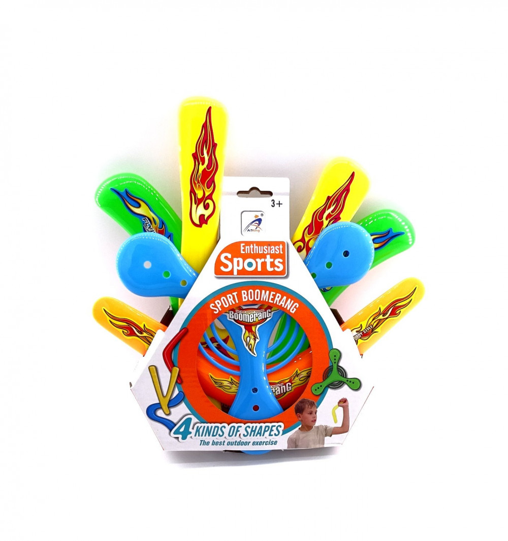 A frizbi és a bumeráng klasszikus szabadtéri játék, van egy egyedi, megunhatatlan varázsa mely minden egyes dobást szórakoztatóvá képes tenni. A játék egyszerű és gyors, sportos időtöltést garantál a tágas réten és az otthoni kertben egyaránt. Ezzel a fantasztikus szettel egyszerre 4 különböző színű bumerángra tehetünk szert.