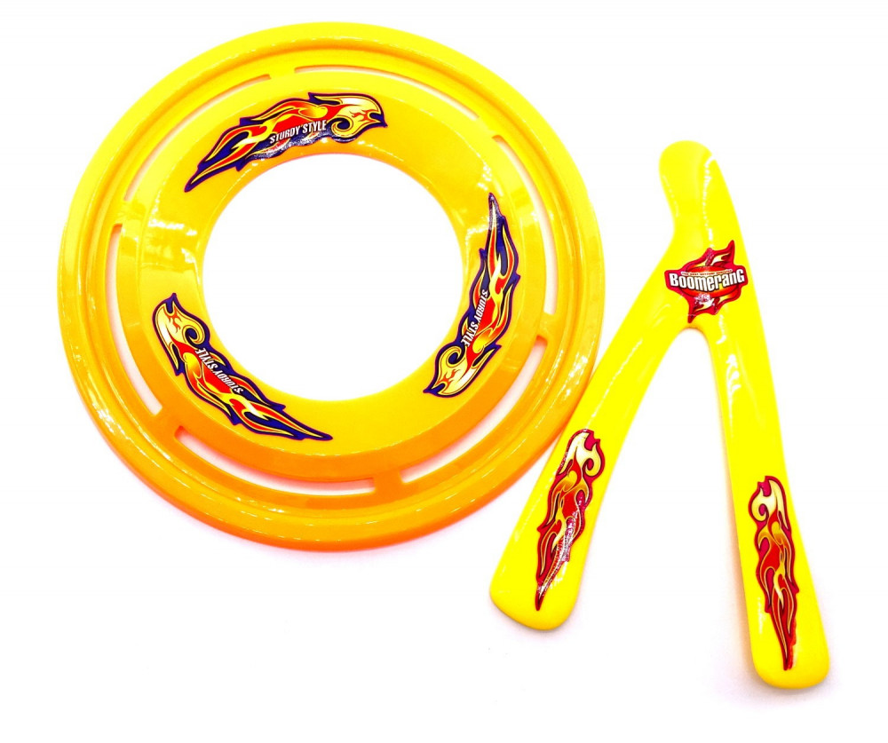 A frizbi és a bumeráng klasszikus szabadtéri játék, van egy egyedi, megunhatatlan varázsa mely minden egyes dobást szórakoztatóvá képes tenni. A játék egyszerű és gyors, sportos időtöltést garantál a tágas réten és az otthoni kertben egyaránt. Ezzel a fantasztikus 2 az 1-ben szettel egyszerre tehetsz szert egy bumerángra és egy frizbire.