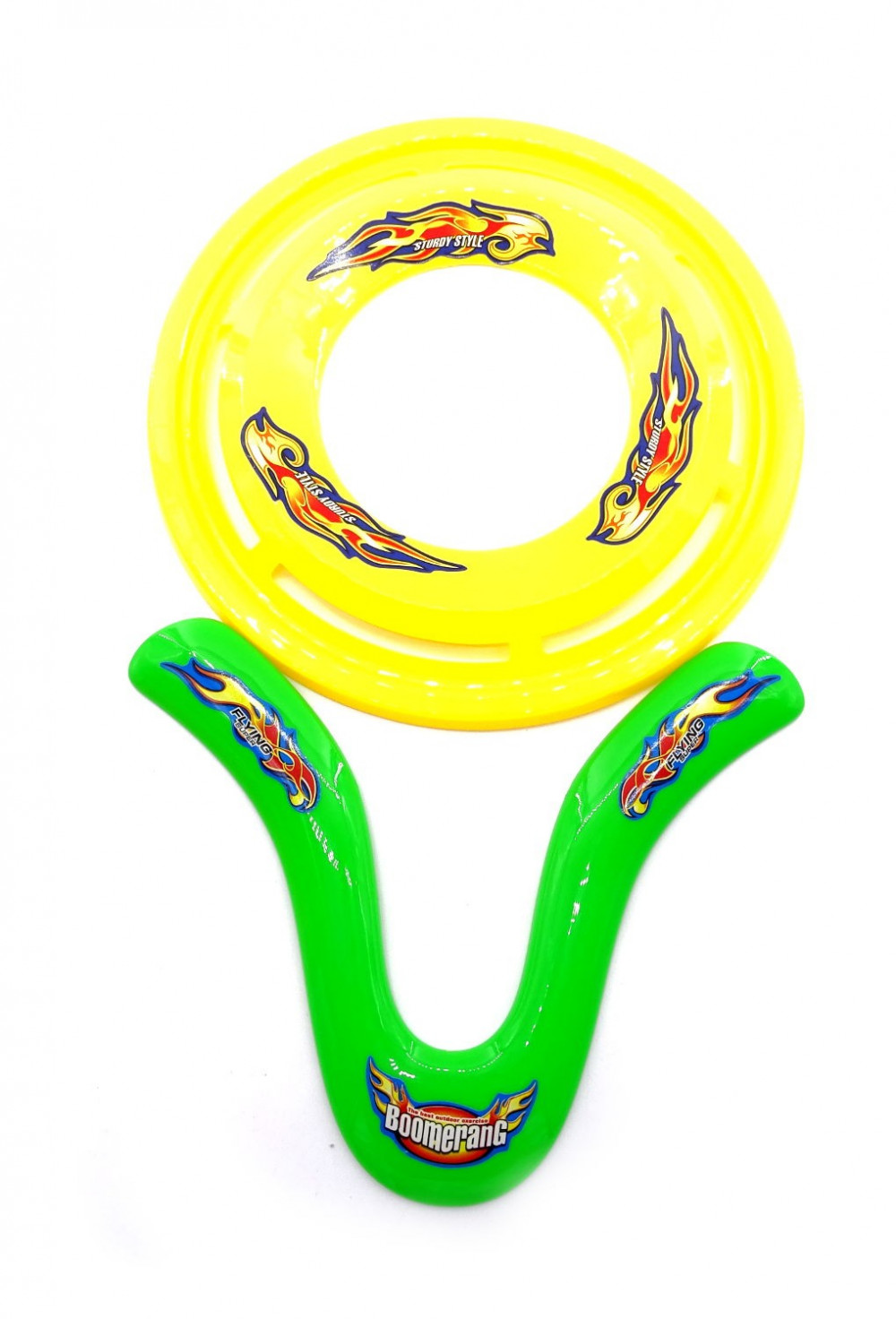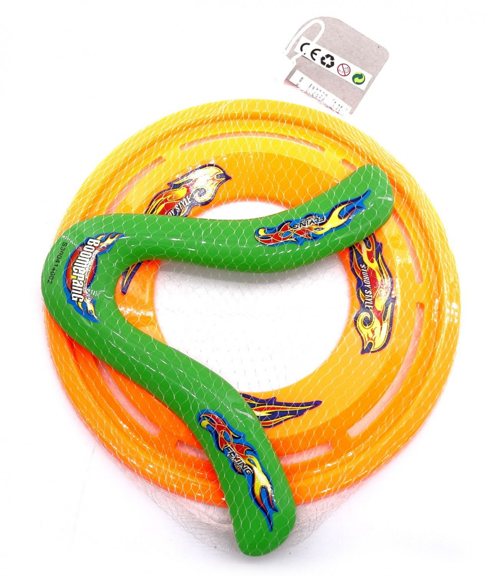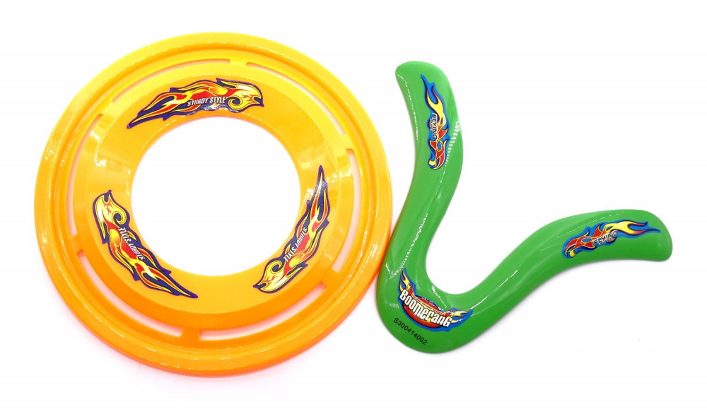 A frizbi és a bumeráng klasszikus szabadtéri játék, van egy egyedi, megunhatatlan varázsa mely minden egyes dobást szórakoztatóvá képes tenni. A játék egyszerű és gyors, sportos időtöltést garantál a tágas réten és az otthoni kertben egyaránt. Ezzel a fantasztikus 2 az 1-ben szettel egyszerre tehetsz szert egy bumerángra és egy frizbire.