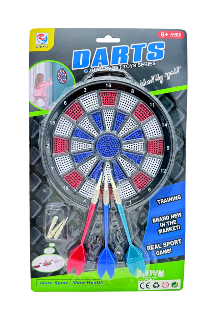 A darts játék mindig izgalmas kihívást ígér, és ez a kompakt, 18 x 18 cm-es darts játékszett tökéletes választás, ha szeretnéd otthon is átélni a célbadobás örömét. A praktikus, lapon csomagolt készlet könnyen elfér a táskában vagy fiókban, így bárhová magaddal viheted, akár egy baráti összejövetelre, akár utazáshoz. A szett tartalmaz egy színes, jól látható pontozású darts táblát és több darts nyilat, amelyekkel biztonságosan és játékosan gyakorolhatod a célzást.