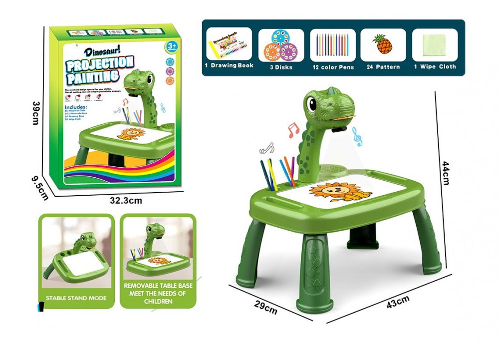 A kivetített kép segítségével könnyebb a gyerekeknek elsajátítani a rajzolás tudományát. Nagyszerű szórakozás és tanulási lehetőség ez a játék a kisgyermekek számára. A minta lapok között lévő hatalmas variáció pedig garantáltan sokáig fogja szórakoztatni a kicsiket.