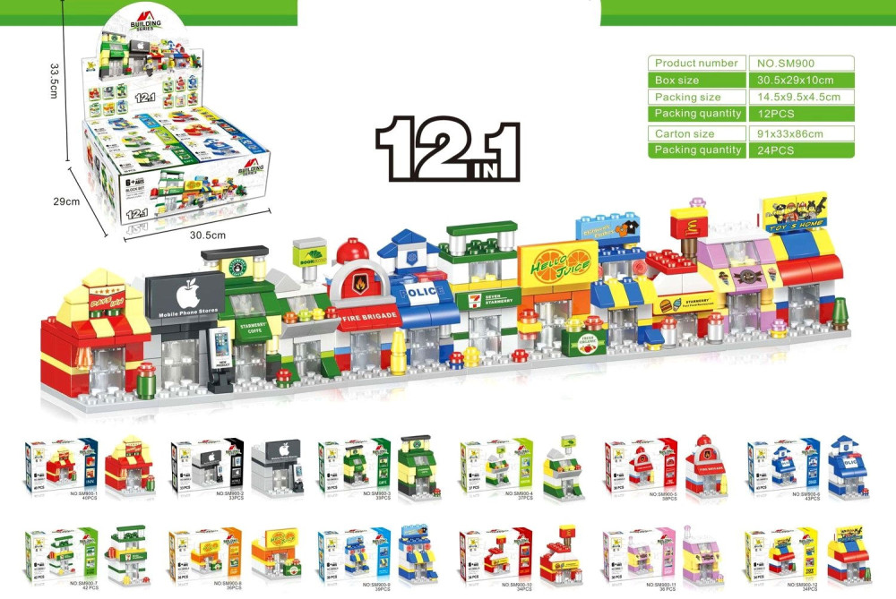 Ismerd meg a "12 in 1" építőjáték készletet, amely tökéletes választás a 6 éves és annál idősebb gyerekek számára! Ez a készlet 12 különböző épületmodellt tartalmaz, beleértve kávézót, mobiltelefon üzletet, rendőrőrsöt és tűzoltóállomást. Minden csomag egy-egy átlátszó dobozban érkezik, ami izgalmas meglepetést tartogat a gyerekeknek.
