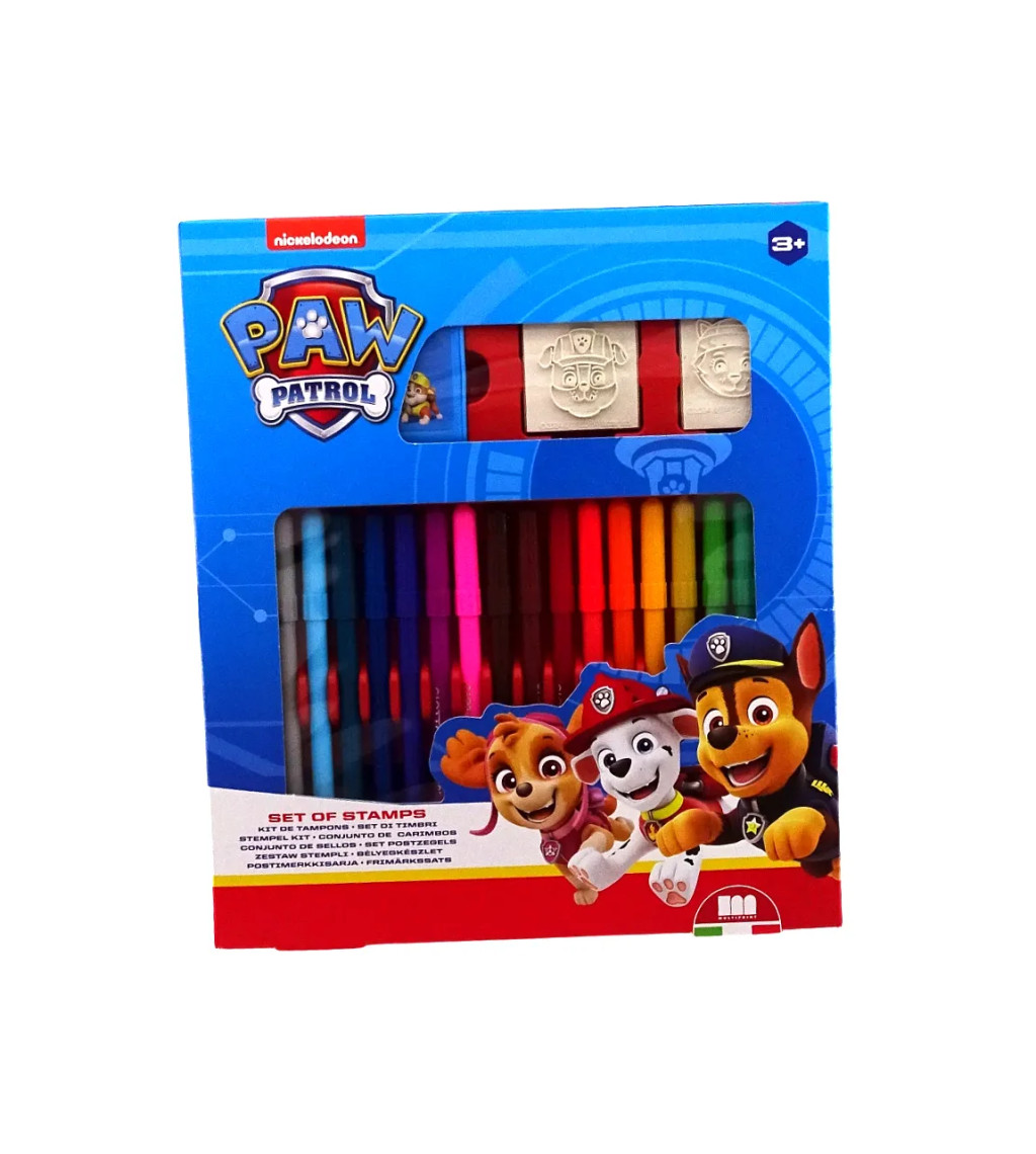 A Mancs őrjárat 18 db-os nyomdaszett filctollal tökéletes választás minden kis rajongónak, aki szereti a bátor kutyusok kalandjait. Ebben a kreatív készletben 2 db különböző Mancs őrjárat nyomda található, amelyek segítségével a gyerekek saját Rubble vagy Everest nyomdaképeket készíthetnek. Emellett a készlet 18 színes filctollat tartalmaz, amikkel kedvük szerint színezhetik és díszíthetik alkotásaikat.