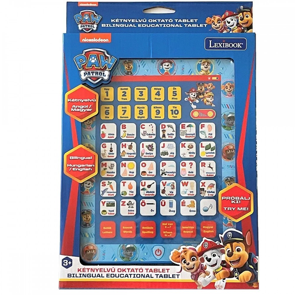 Játssz ezzel a Magyar/Angol nyelvű Mancs Őrjárat oktató tablettel és tanulj meg írni, számolni, adatokat memorizálni magyarul és angolul. A játék 3 db AAA/LR03 elemmel működik (a csomag tartalma).