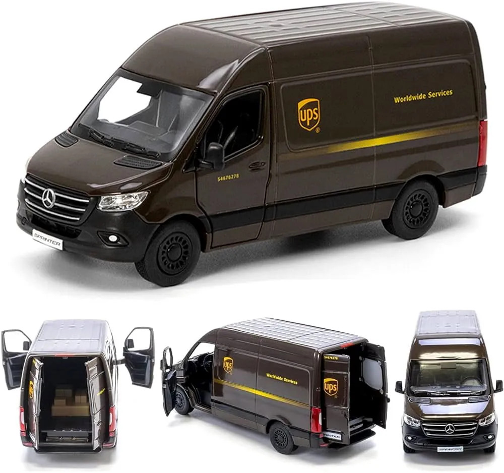 Szerezd be ezt a Kinsmart Mercedes Sprinter UPS Edition fémautót, és élvezd az UPS logisztikai járműveinek precíz reprodukcióját és dinamikus játékélményét.