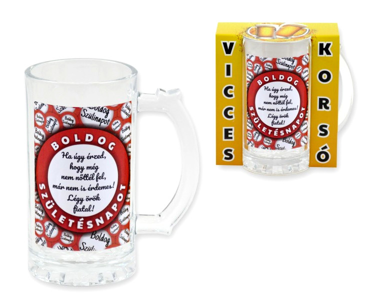 Egy születésnap akkor az igazi, ha nevetéssel és egy jó korsó sörrel indul az ünneplés. A Boldog Születésnapot! feliratos, 400 ml-es üveg söröskorsó tökéletes ajándék mindazoknak, akik szeretik stílusosan koccintani a nagy napon.