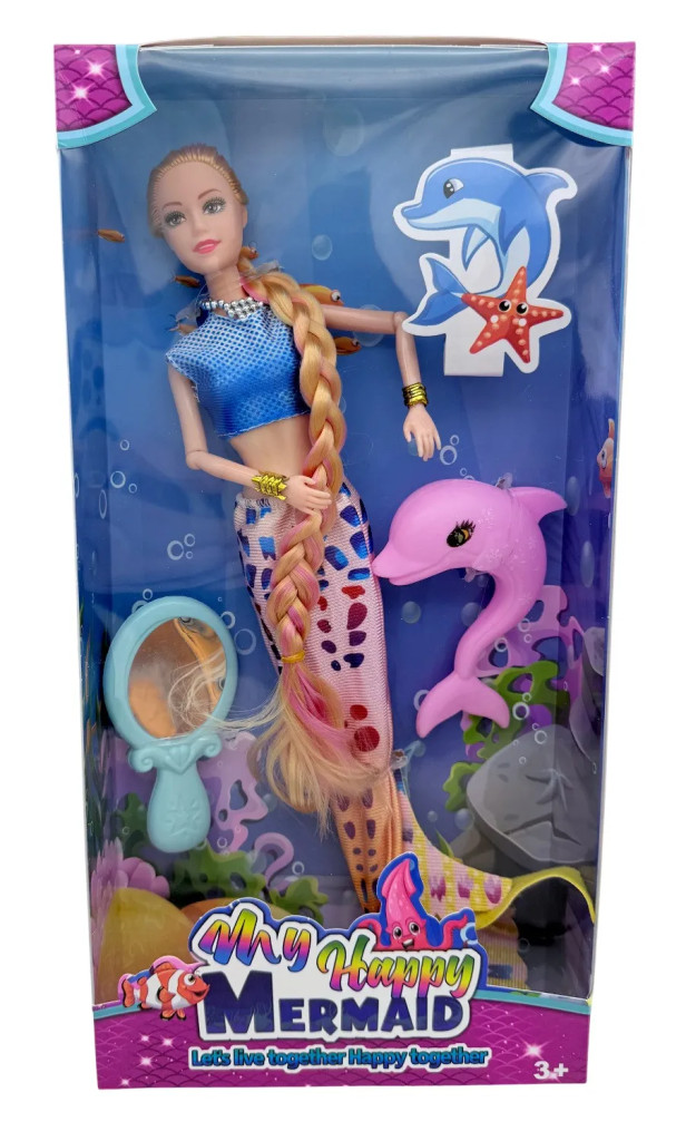 Sellő baba játékszett kiegészítőkkel dobozban